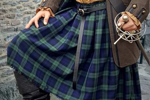 Die schwere und dichte Wolle, die die Schotten von ihren Schafen bekamen, hielt dem ewigen Regen erstaunlich lange stand. Aber wenn sie erst einmal durchnässt war, zog sie die Träger mit ihrem Gewicht nieder. Außerdem eignet sich so eine Wolle für den Kilt heute nicht mehr für jeden. Bei LARP-Fashion.de verwenden wir hochwertige Stoffe, die lange halten und alles mitmachen. Die Hemden erhältst Du z.B. in Leinen und Baumwolle. Die Weste ist aus guter Baumwolle gefertigt. Den Tartan-Kilt fertigen wir aus einer weichen und stabilen Viskose-Polyester Mischung. Das Zubehör wie Dolchhalter, Gürtel und Bandolier bekommst Du aus Leder, während wir Dir Stiefel und Schuhe aus Leder, Veloursleder oder auch aus veganem Kunstleder anbieten. Alle unsere Materialien und das Zubehör sind kampferprobt und pflegeleicht.